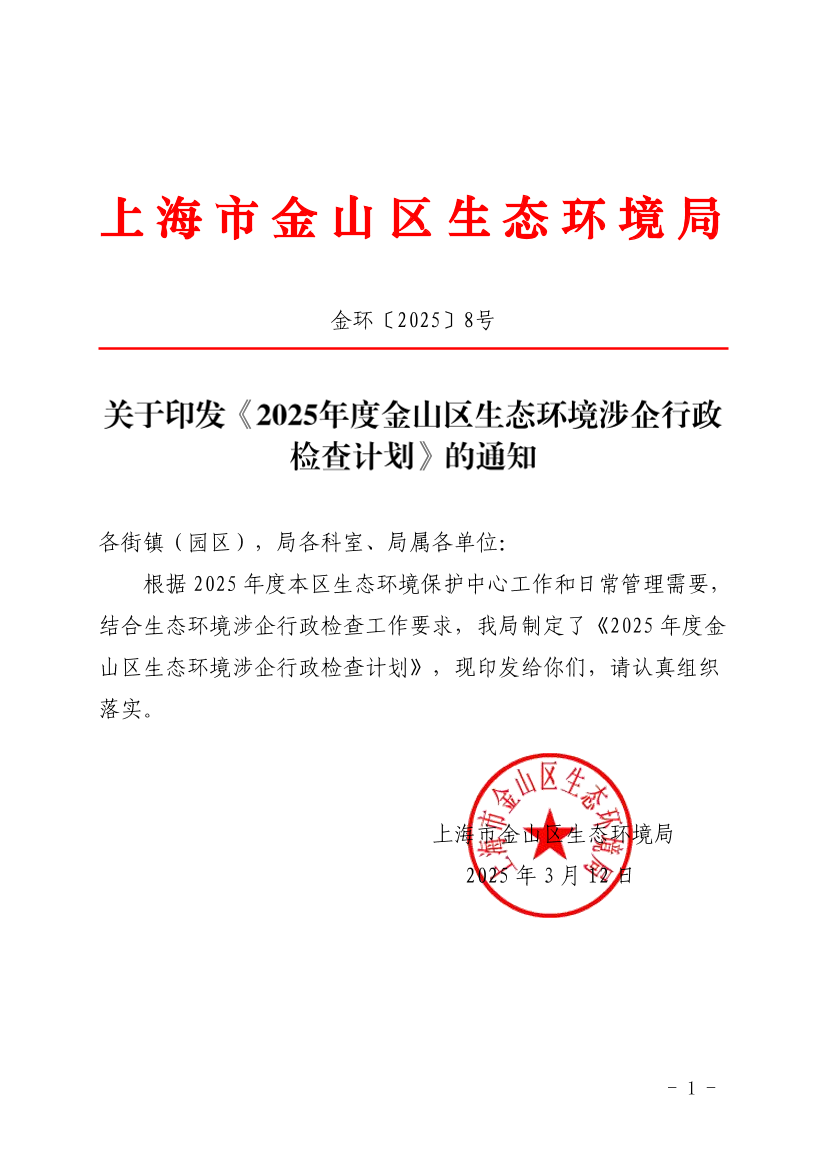 2025年度金山區(qū)生態(tài)環(huán)境涉企行政檢查計(jì)劃