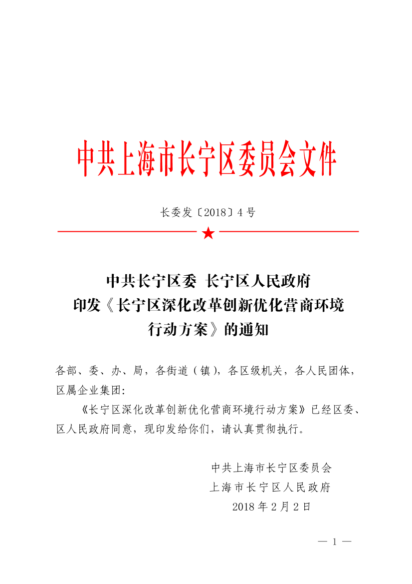 ??《長寧區(qū)深化改革創(chuàng)新優(yōu)化營商環(huán)境行動方案》已經(jīng)區(qū)委、區(qū)人民政府同意,現(xiàn)印發(fā)給你們,請認真貫徹執(zhí)行。