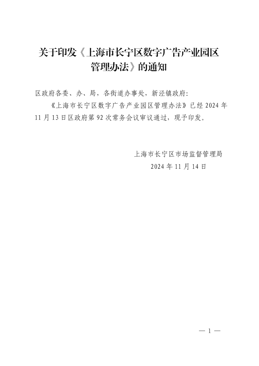 關于印發(fā)《上海市長寧區(qū)數(shù)字廣告產(chǎn)業(yè)園區(qū)管理辦法》的通知