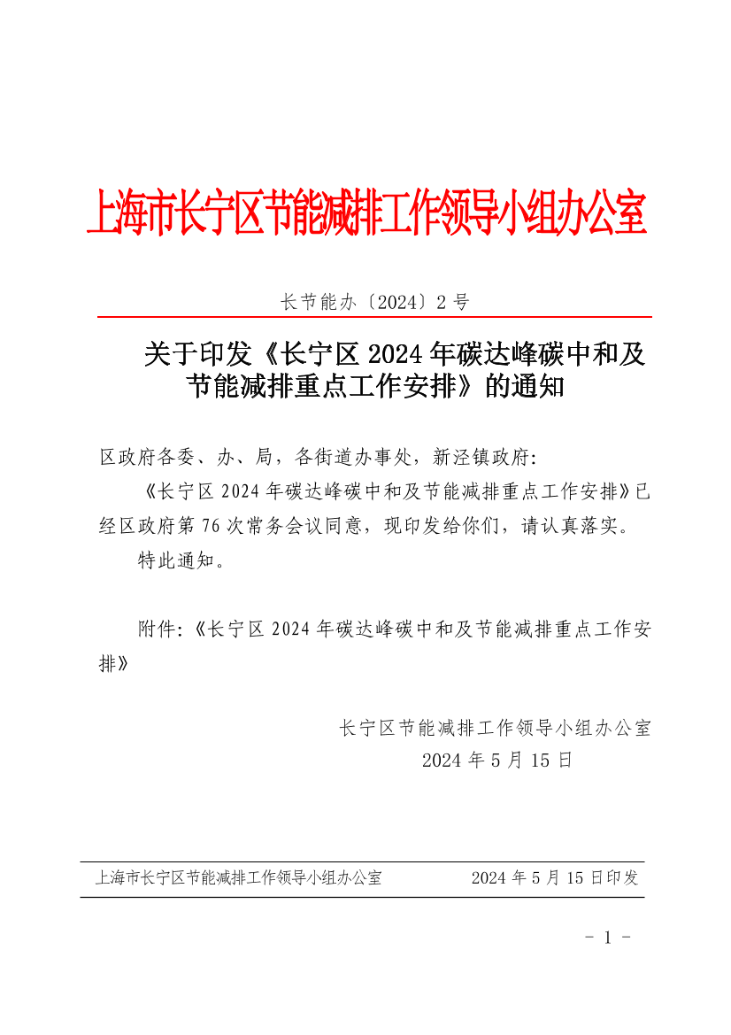 關(guān)于印發(fā)《長寧區(qū)2024年碳達(dá)峰碳中和節(jié)能減排重點(diǎn)工作安排》的通知
