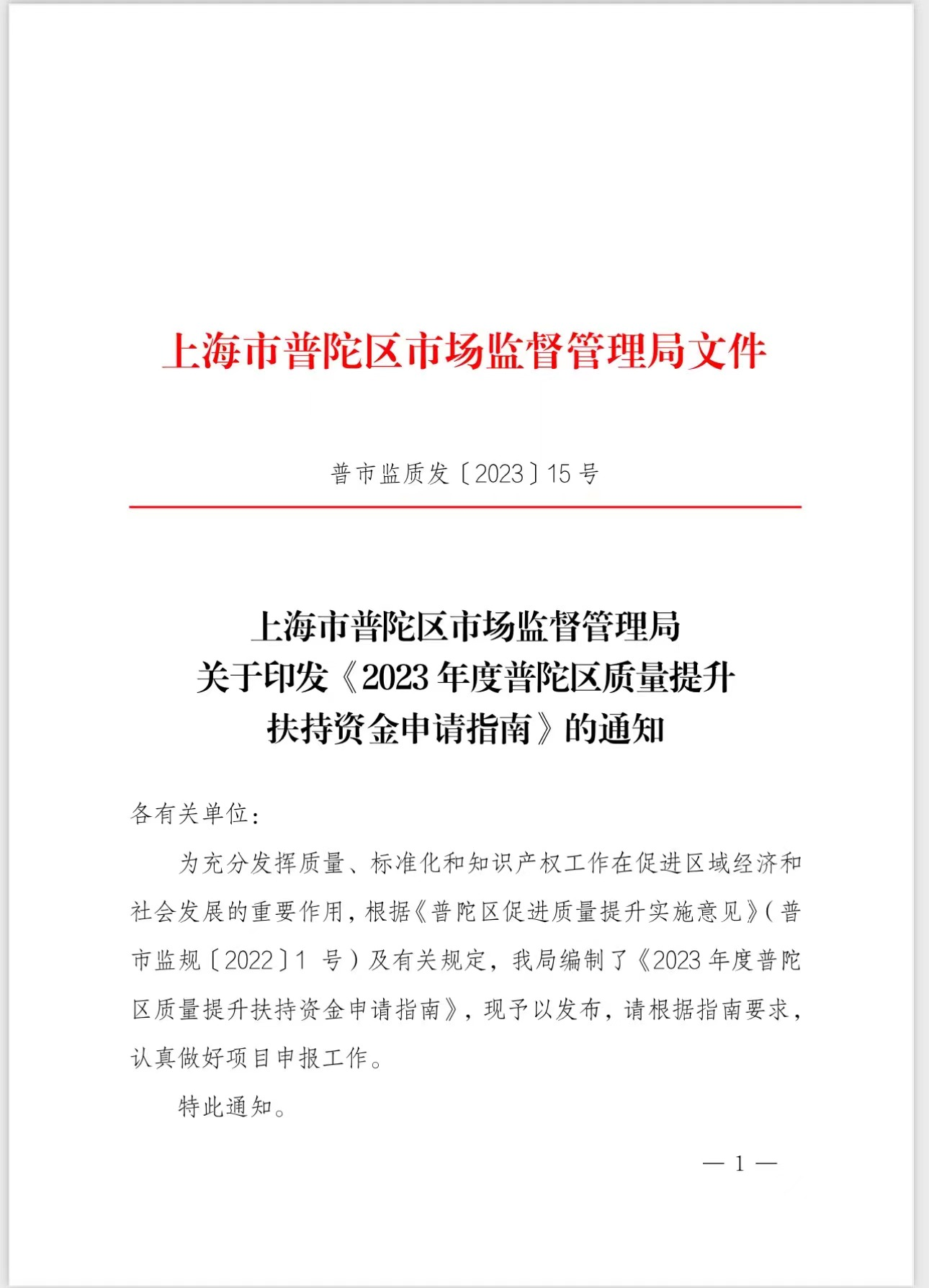 2023年度普陀區(qū)質(zhì)量提升扶持資金申請指南