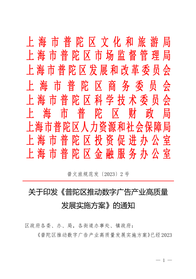 ??《普陀區(qū)推動數(shù)字廣告產(chǎn)業(yè)高質(zhì)量發(fā)展實(shí)施方案》已經(jīng)2023年3月28日第29次區(qū)政府常務(wù)會議審議通過,現(xiàn)予印發(fā)。