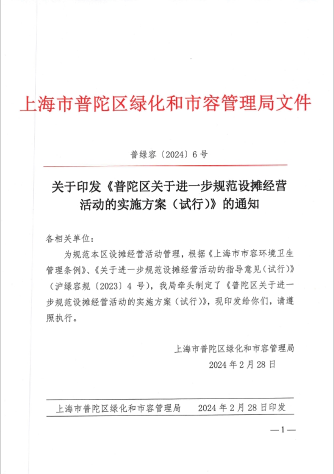 普陀區(qū)關(guān)于進(jìn)一步規(guī)范設(shè)攤經(jīng)營(yíng)活動(dòng)的實(shí)施方案(試行)