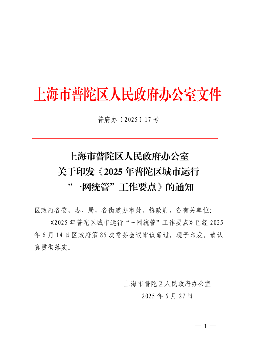 ??《2025年普陀區(qū)城市運(yùn)行“一網(wǎng)統(tǒng)管”工作要點(diǎn)》已經(jīng)2025年6月14日區(qū)政府第85次常務(wù)會(huì)議審議通過(guò),現(xiàn)予印發(fā)。請(qǐng)認(rèn)真貫徹落實(shí)。