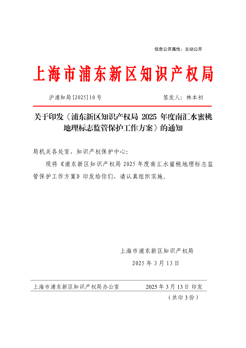 ??現(xiàn)將《浦東新區(qū)知識產(chǎn)權(quán)局2025年度南匯水蜜桃地理標(biāo)志監(jiān)管保護(hù)工作方案》印發(fā)給你們,請認(rèn)真組織實(shí)施。