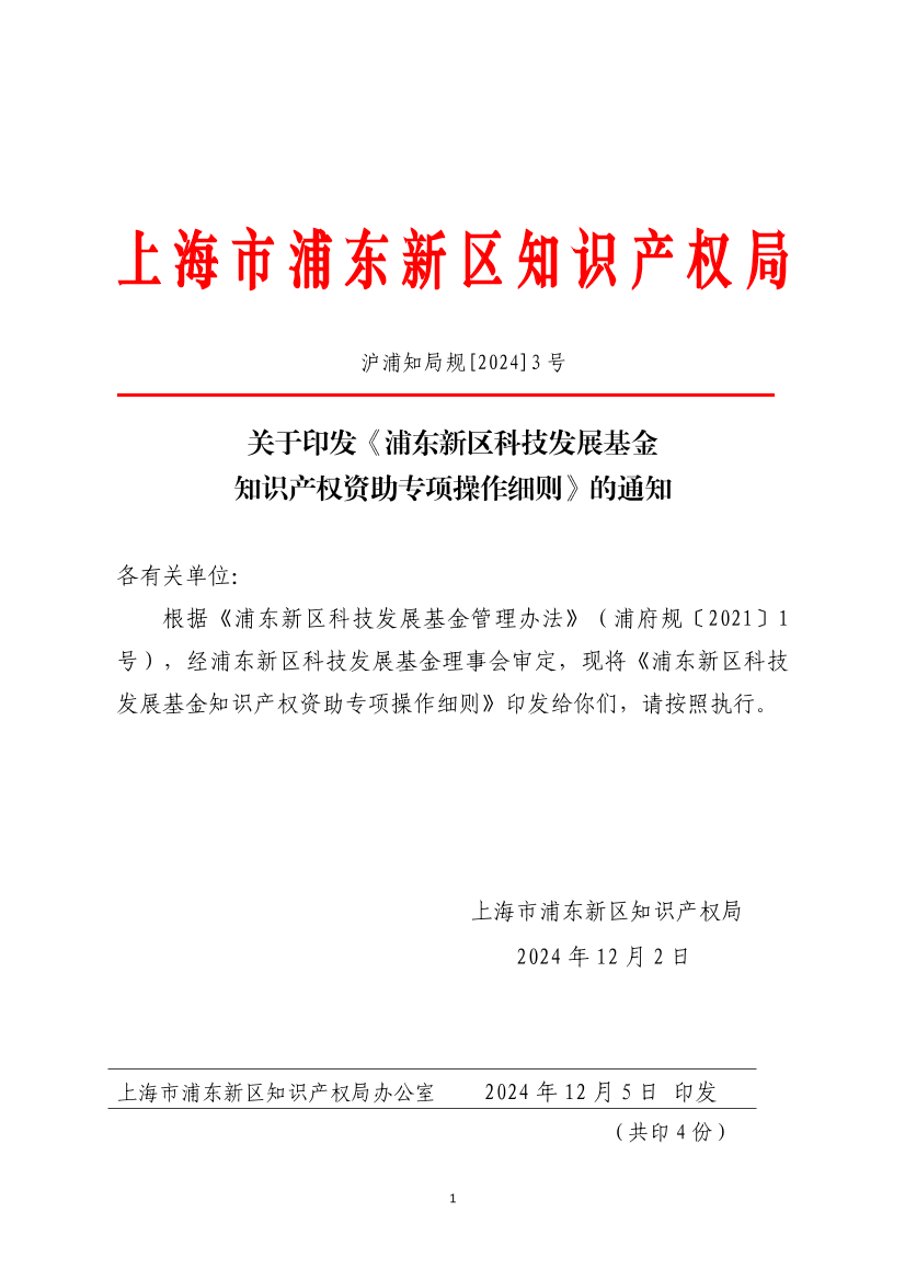 ??根據(jù)《浦東新區(qū)科技發(fā)展基金管理辦法》(浦府規(guī)〔2021〕1號),經(jīng)浦東新區(qū)科技發(fā)展基金理事會審定,現(xiàn)將《浦東新區(qū)科技發(fā)展基金知識產(chǎn)權(quán)資助專項操作細(xì)則》印發(fā)給你們,請按照執(zhí)行。