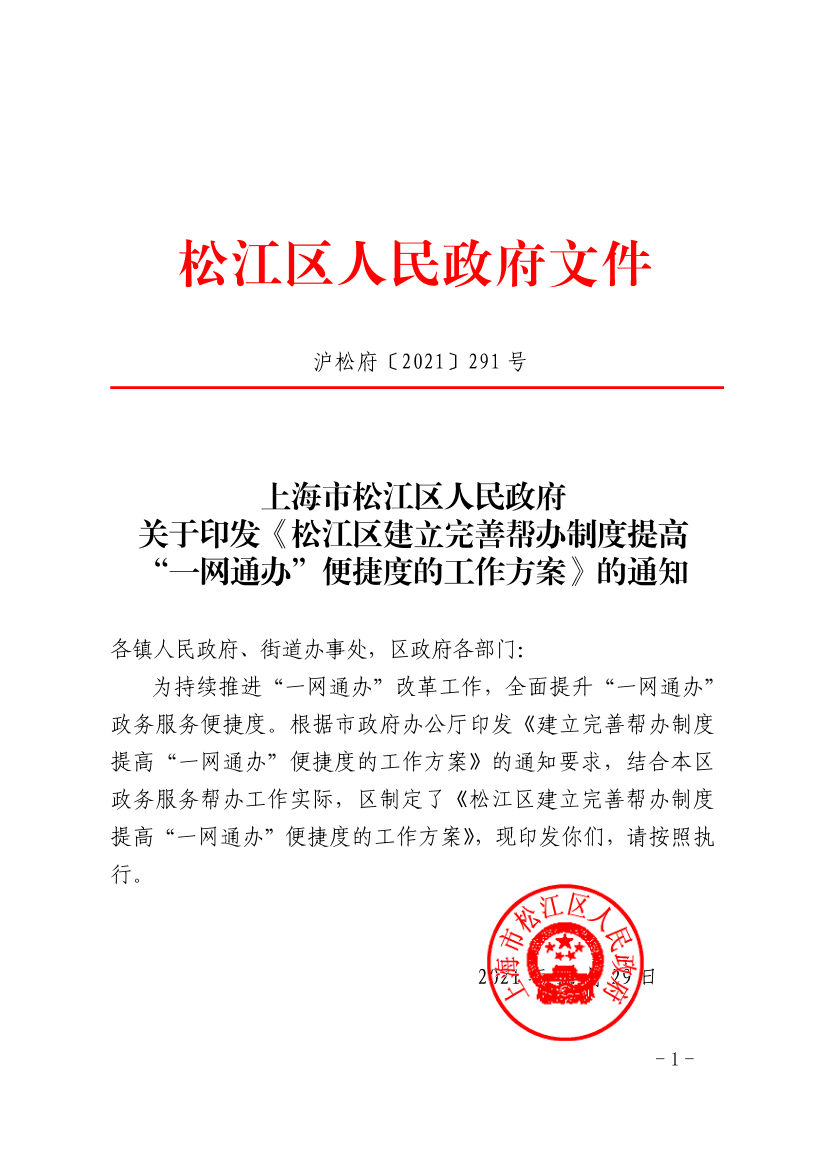 關(guān)于印發(fā)《松江區(qū)建立完善幫辦制度提高“一網(wǎng)通辦”便捷度的工作方案》的通知