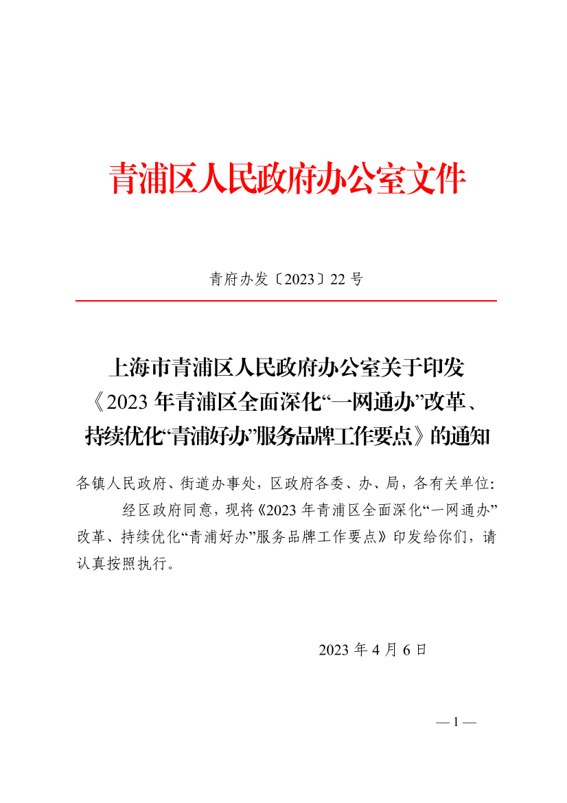 經(jīng)區(qū)政府同意,現(xiàn)將《2023年青浦區(qū)全面深化“一網(wǎng)通辦”改革、持續(xù)優(yōu)化“青浦好辦”服務(wù)品牌工作要點》印發(fā)給你們,請認(rèn)真按照執(zhí)行。