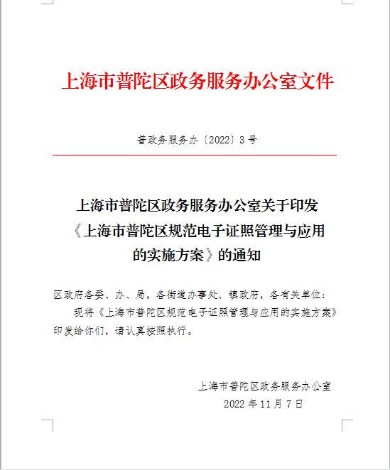 上海市普陀區(qū)規(guī)范電子證照管理與應用的實施方案