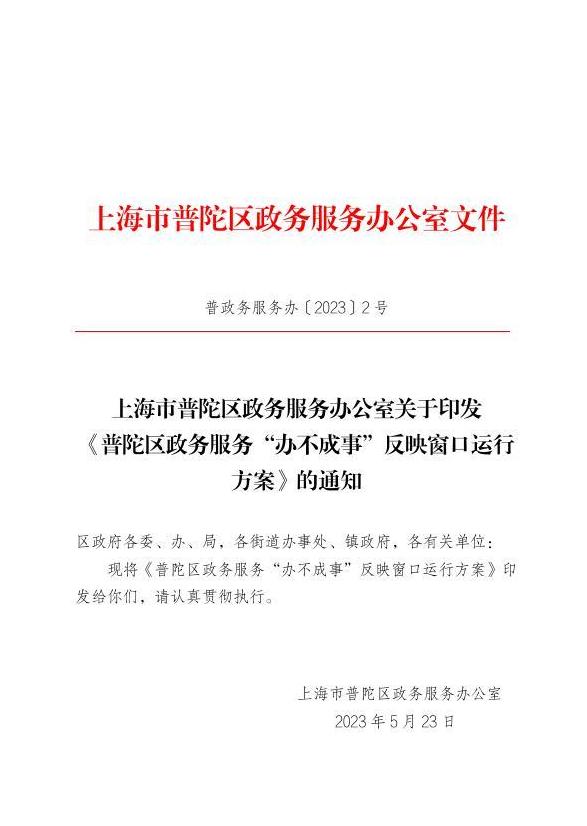 現(xiàn)將《普陀區(qū)政務服務“辦不成事”反映窗口運行方案》印發(fā)給你們,請認真貫徹執(zhí)行。