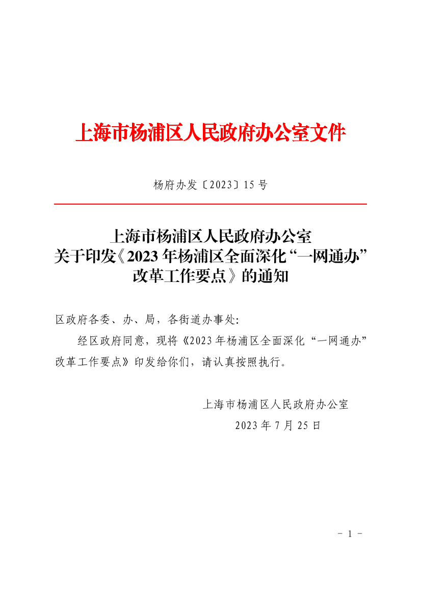 ??經(jīng)區(qū)政府同意,現(xiàn)將《2023年楊浦區(qū)全面深化“一網(wǎng)通辦”改革工作要點》印發(fā)給你們,請認真按照執(zhí)行。