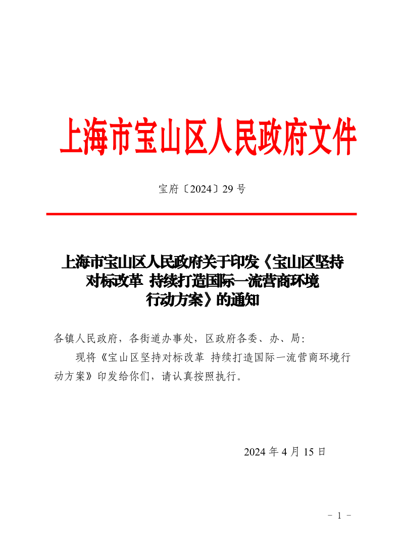 關于印發(fā)《寶山區(qū)堅持對標改革 持續(xù)打造國際一流營商環(huán)境行動方案》的通知