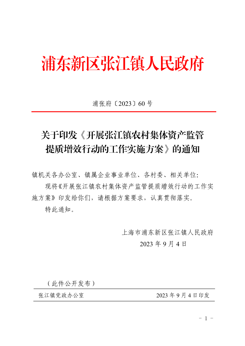 ??現(xiàn)將《開展張江鎮(zhèn)農(nóng)村集體資產(chǎn)監(jiān)管提質(zhì)增效行動的工作實施方案》印發(fā)給你們,請根據(jù)方案要求,認(rèn)真貫徹落實。