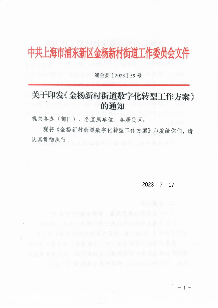 關(guān)于印發(fā)《金楊新村街道數(shù)字化轉(zhuǎn)型工作方案》的通知