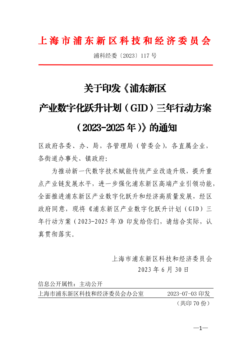 ??為推動(dòng)新一代數(shù)字技術(shù)賦能傳統(tǒng)產(chǎn)業(yè)改造升級(jí),提升重點(diǎn)產(chǎn)業(yè)鏈發(fā)展水平,進(jìn)一步強(qiáng)化浦東新區(qū)高端產(chǎn)業(yè)引領(lǐng)功能,全面推進(jìn)浦東新區(qū)產(chǎn)業(yè)數(shù)字化躍升和經(jīng)濟(jì)高質(zhì)量發(fā)展,經(jīng)區(qū)政府同意,現(xiàn)將《浦東新區(qū)產(chǎn)業(yè)數(shù)字化躍升計(jì)劃(GID)三年行動(dòng)方案(2023-2025年)》印發(fā)給你們,請(qǐng)結(jié)合實(shí)際,認(rèn)真貫徹落實(shí)。