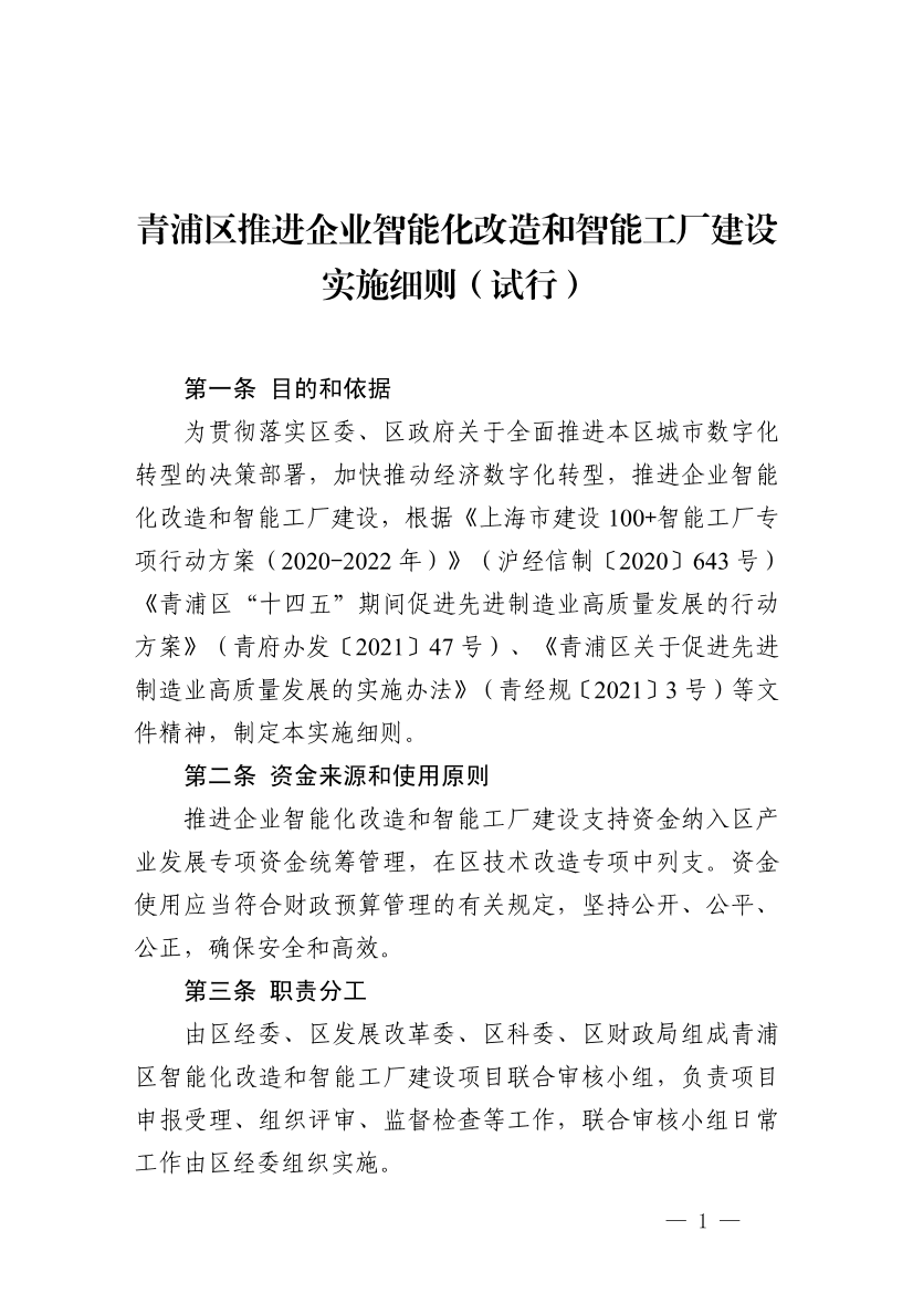 ??根據(jù)《青浦區(qū)“十四五”期間促進(jìn)先進(jìn)制造業(yè)高質(zhì)量發(fā)展的行動(dòng)方案》(青府辦發(fā)〔2021〕47號(hào))《青浦區(qū)關(guān)于促進(jìn)先進(jìn)制造業(yè)高質(zhì)量發(fā)展的實(shí)施辦法》(青經(jīng)規(guī)〔2021〕3號(hào))文件精神,區(qū)經(jīng)委制訂了《青浦區(qū)推進(jìn)企業(yè)智能化改造和智能工廠建設(shè)實(shí)施細(xì)則(試行)》,現(xiàn)印發(fā)給你們,請(qǐng)遵照?qǐng)?zhí)行。