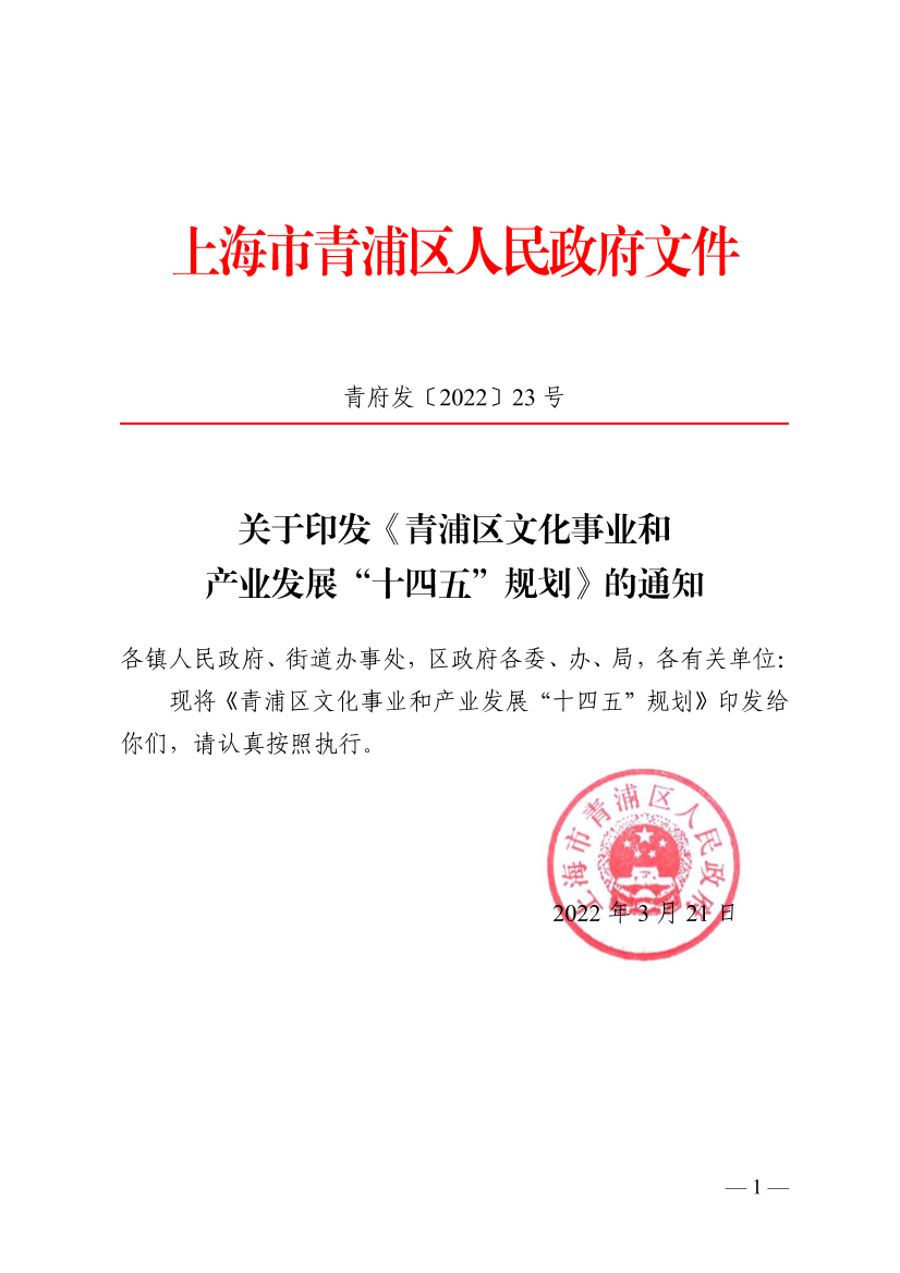 關(guān)于印發(fā)《青浦區(qū)文化事業(yè)和產(chǎn)業(yè)發(fā)展“十四五”規(guī)劃》的通知