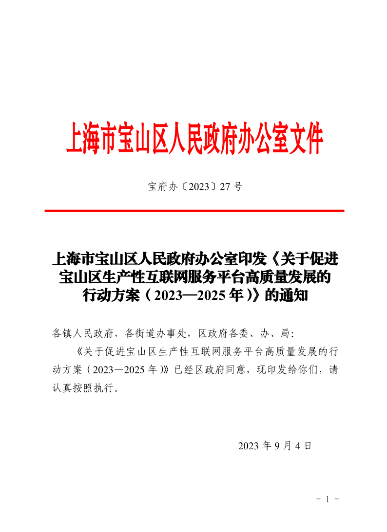 ??《關(guān)于促進(jìn)寶山區(qū)生產(chǎn)性互聯(lián)網(wǎng)服務(wù)平臺(tái)高質(zhì)量發(fā)展的行動(dòng)方案(2023—2025年)》已經(jīng)區(qū)政府同意,現(xiàn)印發(fā)給你們,請(qǐng)認(rèn)真按照?qǐng)?zhí)行。